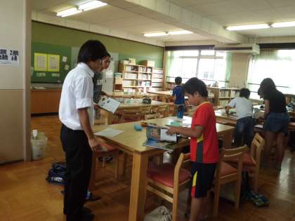 6年2組は 図書室で国語の授業体験をしました。