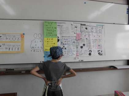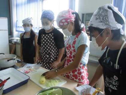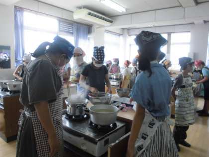 家庭科の『おいしい 楽しい 調理の力』の学習で調理実習を行いました。『カラーコンビネーションサラダ』と『ゆでたまご』を作りました。“きあい”を合言葉として学習を進めました。「き…来たときよりも美しく あ…安全第一 い…急ぐのではなくテキパキと」ゆでたまごは半熟の班が多く,食べれないこともありましたが,ゆで野菜においてはさいばしで固さを確認しながら,おいしく完成させることができました。この実習の経験を生かして家庭でも実践してもらえたらと思います。