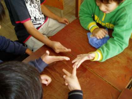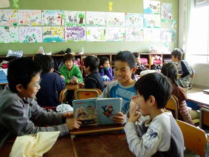 食べ終わった後,「ごちそうさま。」までの待ち時間は,各グループ毎に高学年が低学年の面倒をみるように,本を読んであげたり,ゲームをしたりと工夫して待つことが出来ていました。