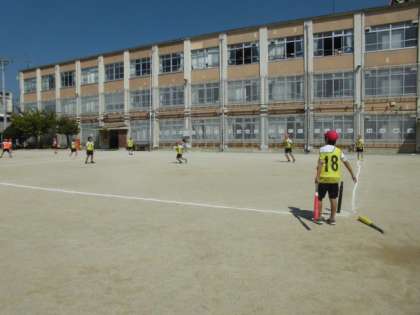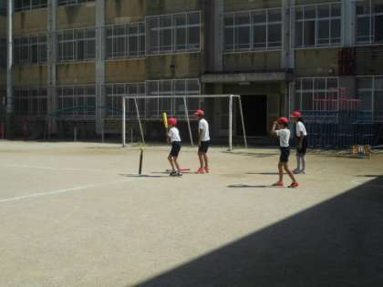 5年生でベースボールの学習を進めています。2組は交流戦ということで『W(ワイワイ)B(ベースボール)C(クラシック)大会』というネーミングをつけて取り組んでいます。アップもキャッチボールをするチームや守備練習をするチームと様々です。グループで気持ちを高めあい,接戦を繰り広げています。次の授業が最終戦となります。