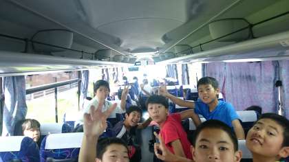 バスの中では、みんなそれぞれに休憩しています。