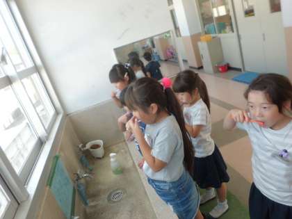 最近給食後に歯磨きをする人が出始めました。