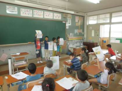 「うみのかくれんぼ」の学習をもとにのはらの生き物たちの隠れ方を図鑑で調べて発表しました。