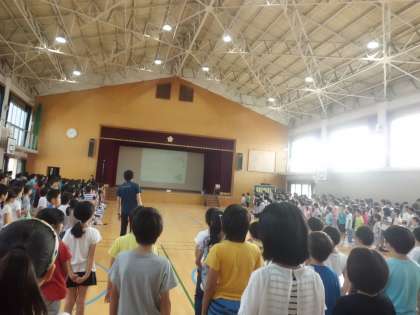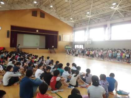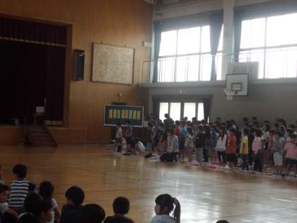 児童集会では,縦割りのグループごとに並んでいます。もう10月ですので,子どもたちもずいぶん慣れた様子で並ぶことができていました。