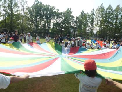 メロディーに合わせて,バルーンを上げたり下げたり,回ったり止まったり,緑の芝生にカラフルなバルーンの花が咲いたようでした。