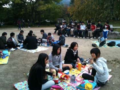 今日は,6年生が京都会館へ演劇鑑賞に出かけました。鑑賞した作品は,劇団四季の「嵐の中の子どもたち」というミュージカルです。午後の部の鑑賞だったので,早めに学校を出発し,京都会館の近くでお弁当をいただきました。大変有意義な鑑賞でした。