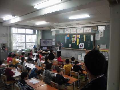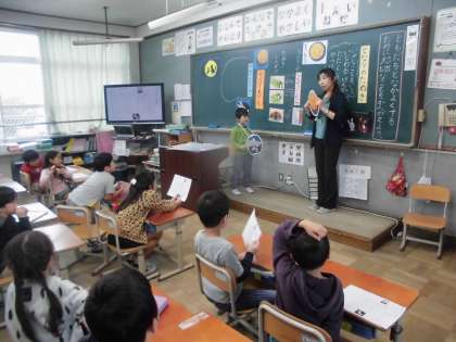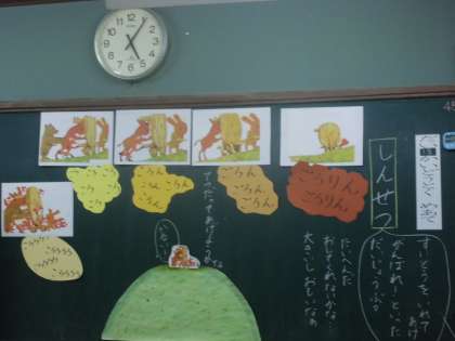 子どもたちは,保護者の方に見守られる中で,道徳のお話を聴いてしっかり自分の考えをもって,みんなと話し合っていました。1年「となりのたぬき」 若草「ごろりん,ごろん,ころころころ」