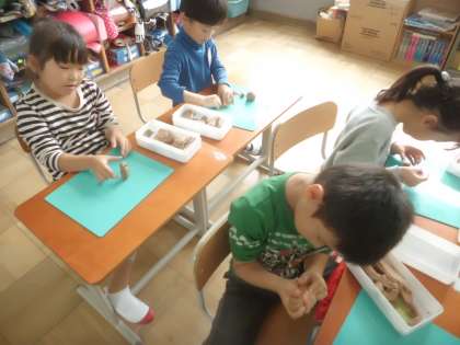 雨で行けなくなった遠足の代わりにねんどで動物園を作りました。