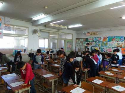 季節と生き物(秋)の学習の様子です。 今日は,ハスやツルレイシ・桜の観察日記を,みんなで読み合いました。