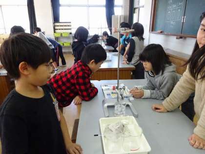 ものの温度と体積の学習の様子です。 今日は,水を温めた時の体積の変化を調べました。