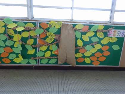 先週一週間は,読書週間でした。 図書室前には,読書の木ができています。