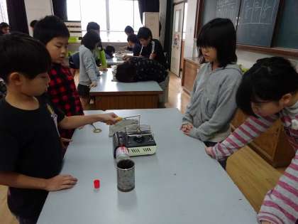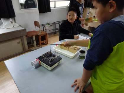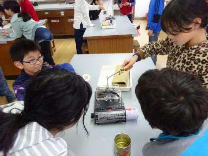 空気の温度と体積の学習の様子です。 今日は,金属を温めたり,冷やしたりしたときの体積の変化を調べました。