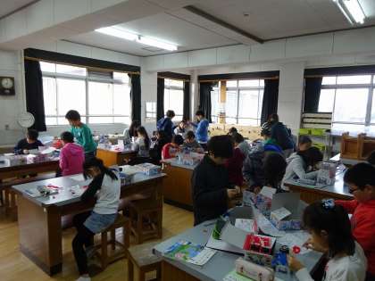 電磁石の性質の学習の様子です。 今日は,電池の向きを変えると,電磁石の極がどうなるのかを実験しました。