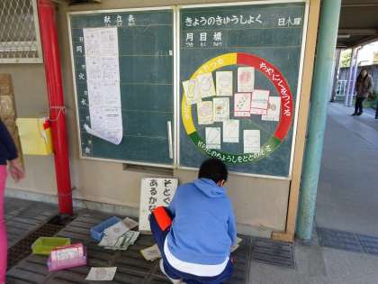 昼休みの様子です。 給食委員会の子どもが栄養黒板の作成をしていました。 当番活動をがんばっています。