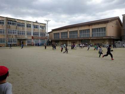 グラウンドで元気よく遊んでいます。