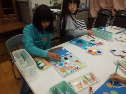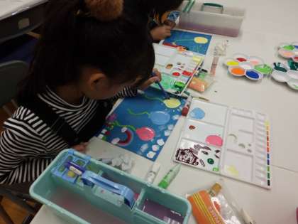 みんな制作に没頭して自分の世界観を表現していました。子どもたち誰しも,「小さなアーティスト」ですね。