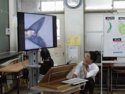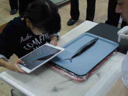 昨年度より弱視通級指導教室が設置されています。11月14日は研究授業が行われました。関係の先生方がたくさん来られましたが,いつも通り元気に学習ができました。この日はさんまの実物が用意され,実際に触れてみたりタブレット端末を使ったりして観察名人を目指しました。