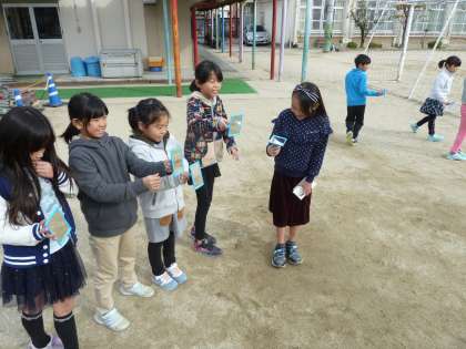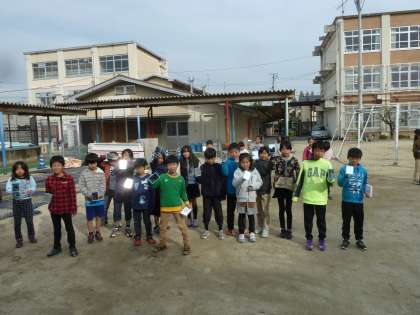 2組のようやく新しい単元「太陽の光をしらべよう」が始まりました。今日もお天気が悪く,あきらめかけたその時。突然太陽が顔を出してくれました。ここぞとばかりに外へ出て,鏡を使って太陽の光をはね返してみました。