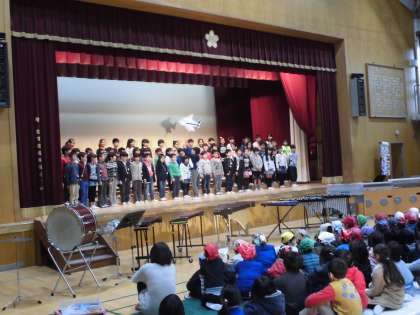 はじめの言葉に続いて,全校合唱「音楽のおくりもの」を全校児童で合唱しました。素敵なハーモニーが体育館いっぱいに広がりました。