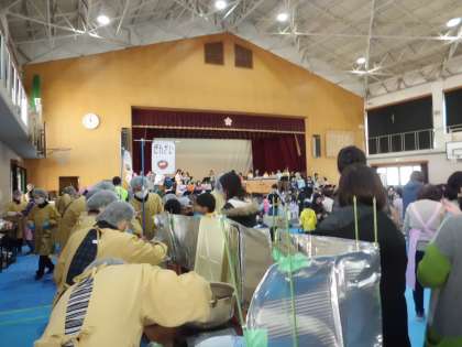 今日は明親小学校で淀学区社会福祉協議会主催のもちつき大会がありました。