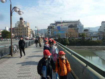 八坂神社から四条通を通って鴨川を渡り,学校歴史博物館へ。