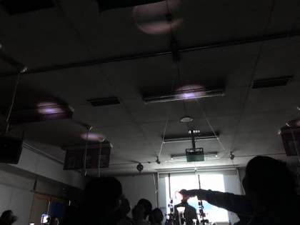 電気をどれぐらいためられるのか,特殊な懐中電灯に入っている磁石をたくさん振りました。どのグループの懐中電灯が一番最後までついていたのでしょう?