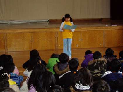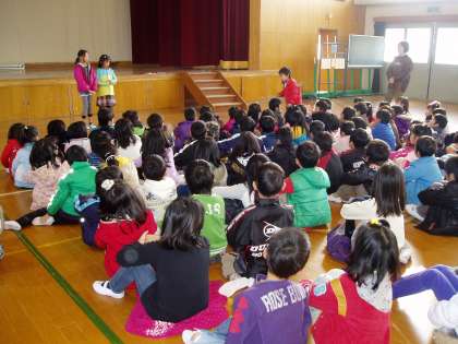 今日は低学年の人権集会が体育館で行われました。クラスの代表が,友だちについて考えたことを発表し,その内容についてグループで話し合いました。司会も2年生の子どもたちが行い,最後に笑顔で「これから もよろしくね。」と握手をしました。