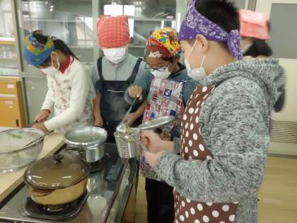 みそ汁・ご飯の調理実習をしました。みそをはかりで量ったり,ご飯を炊くのに火加減を調節したり,班で協力し合いながら,おいしいみそ汁・ご飯を調理することができました。準備・片づけもテキパキ行えていました。さすが!です。自分たちで見通しをもって,意欲的に取り組む姿が立派でした。