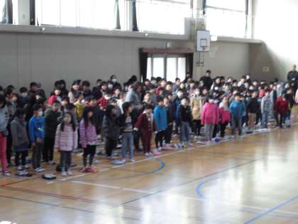 13日(火)の児童集会では,全校合唱の練習をしました。6年生を送る会に向けて歌声が一つになるといいですね。