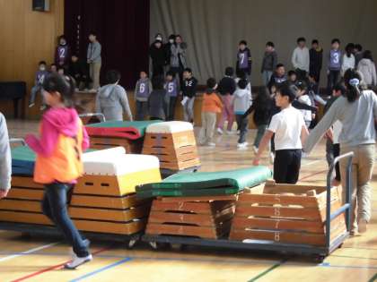 二日目の「かくれんぼ大会」も,なかなか面白かったです。カーテンの後ろから低学年の児童が山盛出てきたのにはびっくりしました。