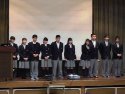 午後から6年生は大淀中学校に行きました。体育館では中学生がプレゼンを使って,学校生活や委員会,部活動のこと等分かりやすく説明をしてくれました。