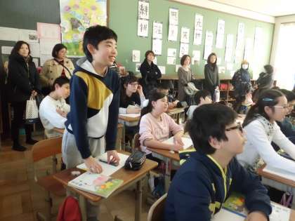 1組は「今,私は,ぼくは」で,この1年間を振り返り,今の自分の想いをみんなに伝えていくといった内容でした。