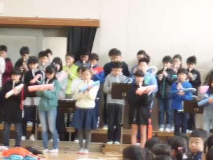 6年生を送る会 5 公開日 2018/03/09 更新日 2018/03/09 学校の様子 5年生は 6年生のバトンを引き継ぎ 「次は自分たち」という覚悟がその姿に見て取れます。 この会の運営も5年生がしてくれました。立派でしたよ。