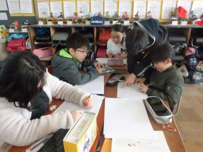 0313 5年生 一枚の写真から 公開日 2018/03/13 更新日 2018/03/13 学校の様子 国語科の『一枚の写真から』の学習で,各班で写真を1枚選び,その写真に合った物語作りを進めています。5年生で行う最後の大きな単元で,各班で協力し合い,活動を進めています。今日は1回目の読み合わせを行いました。起承転結の中でそれぞれの役割箇所をきちんと決められている字数で書けているか確認をしたり,また読み合う中でよりよい表現を班の友だちと見つけ合ったりしました。