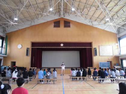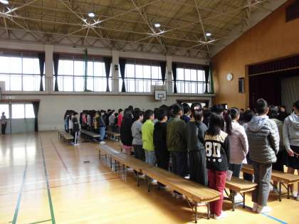 5年生と合同の練習を初めて行いました。真剣に取り組んでいました。あと四日の練習期間ですが,すばらしい卒業式をみんなで創り上げましょう。