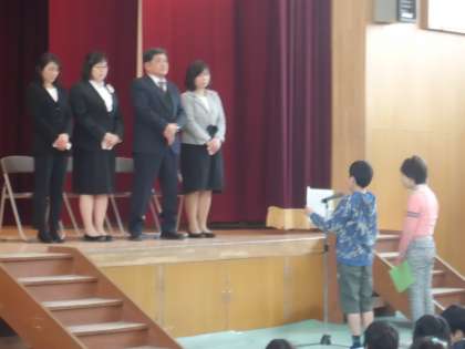 児童を代表して 5年生がお別れの言葉を話してくれました。言葉に続いて花束を,子どもたちから手渡されました。