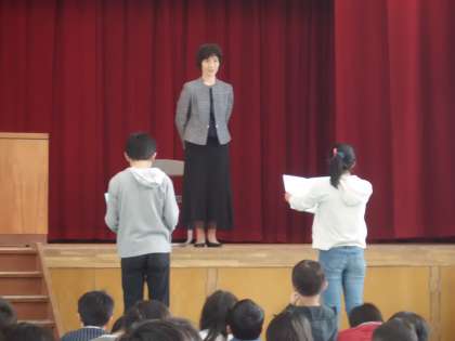 お話の中で,どの学年の子どもが,どんなふうに頑張っていたのかを,ひとつひとつ思い出させてくださいました。そして,学校に来たらみんなが支え合える,学校に来ないなんてもったいないですと続けられました。