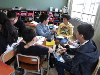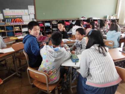 0416 6年生 つないで,つないで,一つのお話 公開日 2018/04/17 更新日 2018/04/17 学校の様子 国語科において『つないで,つないで,一つのお話』の学習をしました。5〜6人グループで前の人に続いて文を考え,お話を作ります。初めの文は「校庭に桜が咲いています。」,最後の文は「みんな幸せな気持ちになりました。」と統一しました。どんなお話ができたかは明後日に発表します。各グループでどのようなお話ができたのか…聞くのが楽しみです。