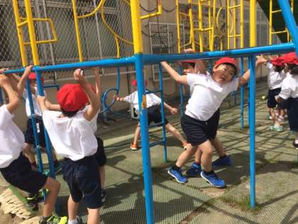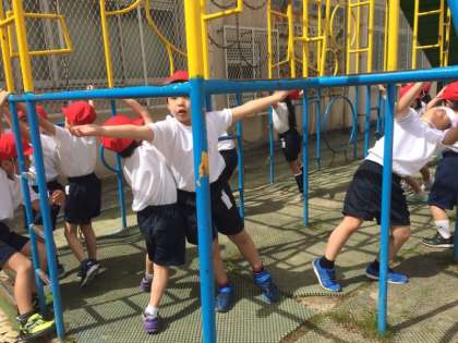 初めて学校の遊具で遊びました。