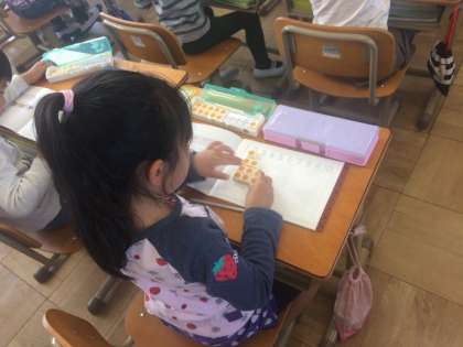 数の分だけ,数図ブロックを並べています。