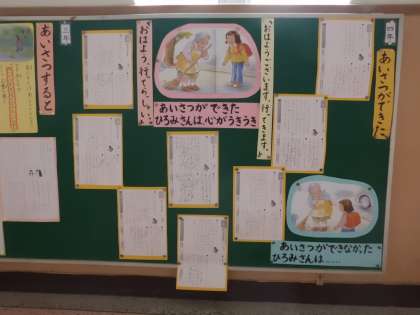 心の広場学習の掲示物が新しくなりました。 4月のあいさつの学習について,各学年の掲示がされています。