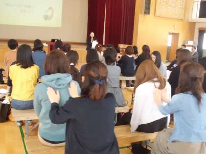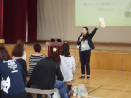 学童期の子どもたちの心の発達について,臨床心理士の目線で分かりやすくお話していただいた後,参加者全員でリラクゼーション体験をしました。