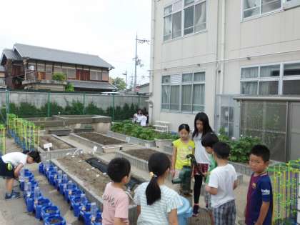 学年園では,それぞれの学年の子どもが,水やりをしています。