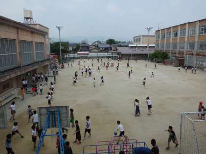 グラウンドでは,たくさんの子どもたちが遊んでいます。