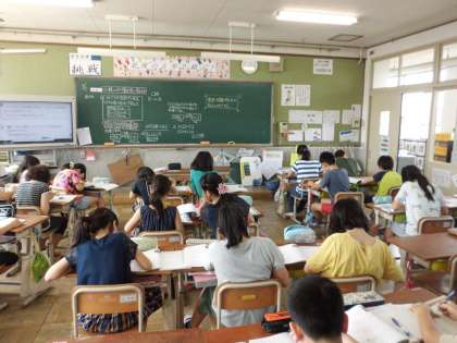 問題文を丁寧にノートに書き,集中して問題を解いています。