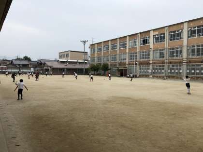 グラウンドでは,サッカー部が活動をしています。