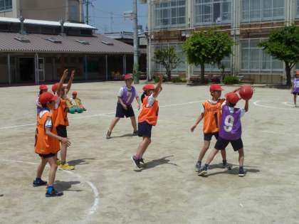 3年生でのエンドボールを思い出し,すぐに感覚を取り戻して,1時間目から上手にゲームをする姿が見られました。