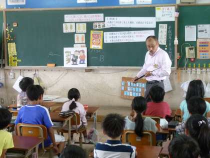 伏見警察署から警察官OBの方に来ていただき,非行防止教室をしていただきました。