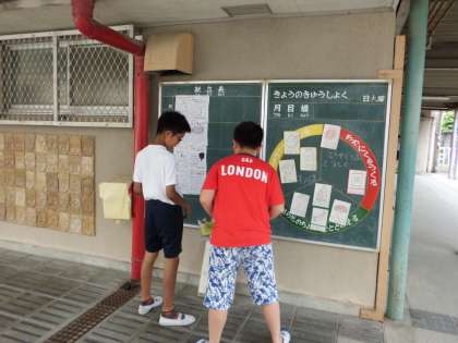 給食委員会の子どもたちが,栄養黒板の作成をしていました。