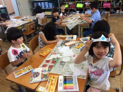 図工では「いろいろなかたちのかみから」の学習に入りました。